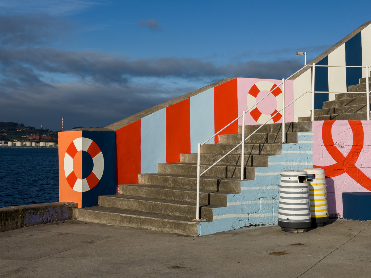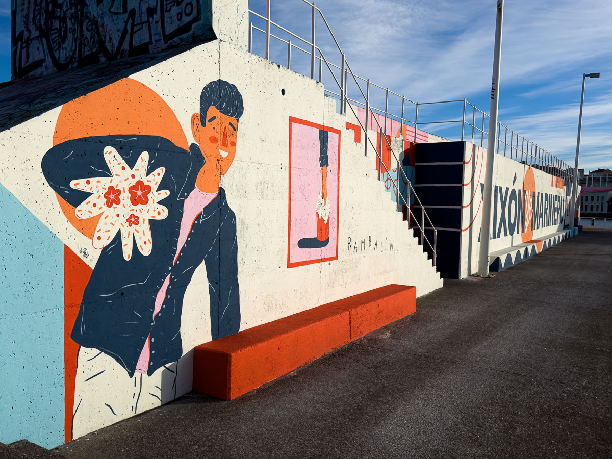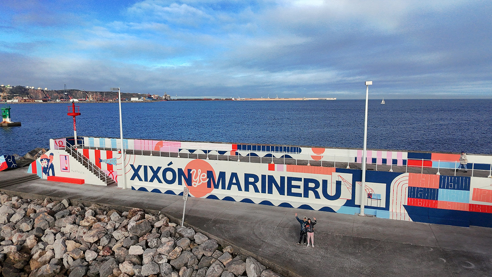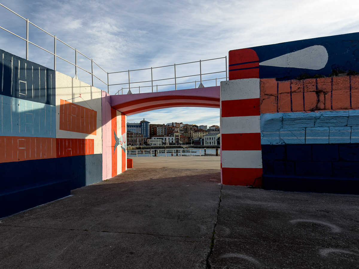 Desde el primer momento tuvimos claro que la intervención tenía que dialogar con un espacio profundamente presente en la memoria colectiva de Gijón: un lugar que la gente recorre cada día haga lluvia, sol o viento.